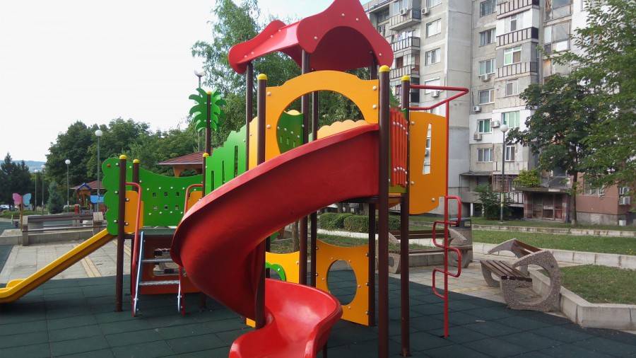 Изцяло са възобновени люлките, пързалките, пейките и настилката на площадката при блок №4 в " Меден рудник ".