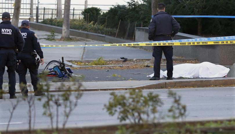 ТАСС оповестява за автомобил, блъснал хората, а Ройтерс за бял пикап. След като блъснал няколко души на велоалеята, лидерът разкрил пукотевица. Двама души са убити, а четирима ранени, съобщи ТАСС, като се базира на в. " Ню Йорк пост ". За двама убити оповестява и Франс прес, като се базира на непотвърдени източници. Зоната на случая е близо до Световния търговски център.