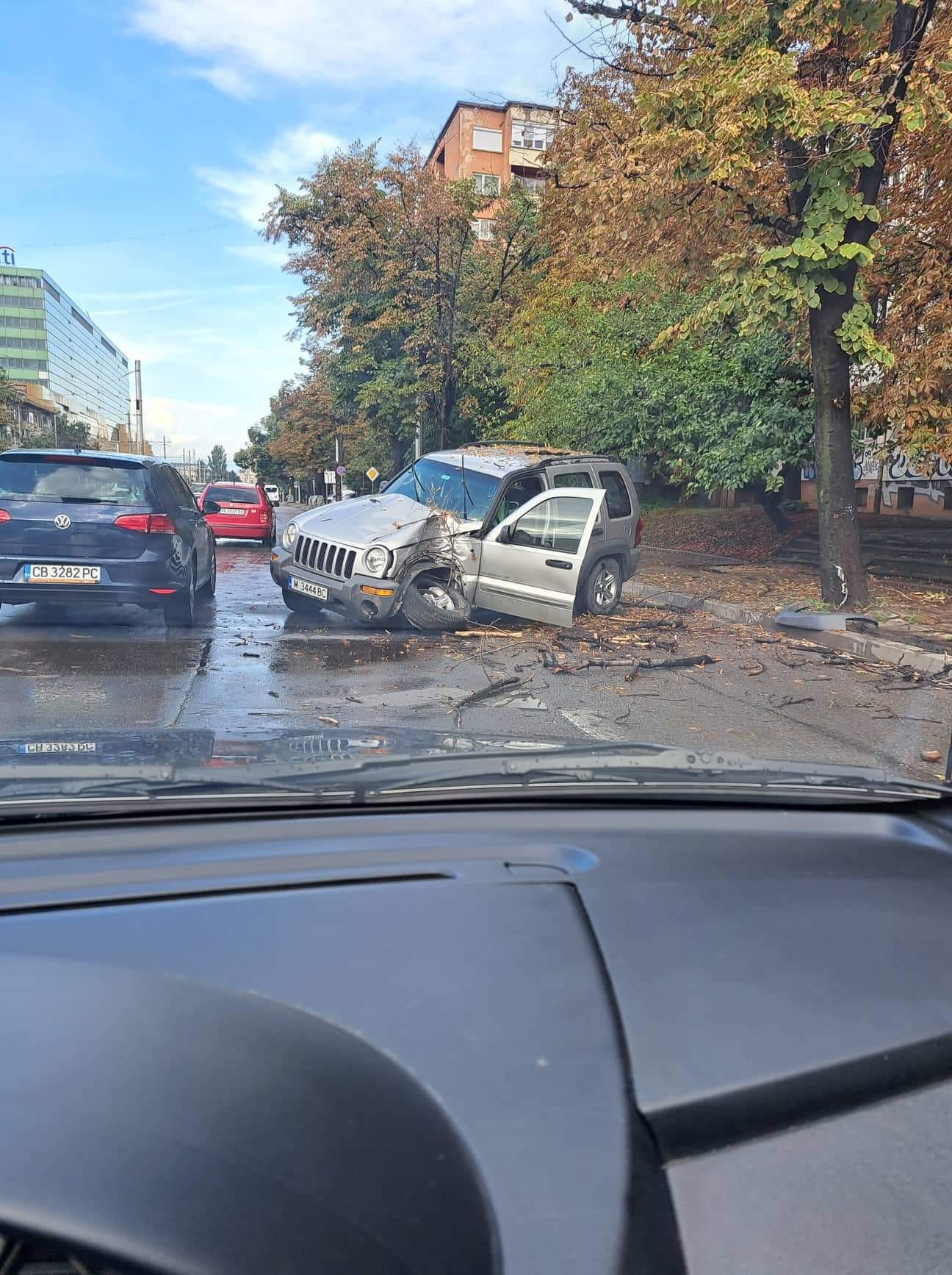 Катастрофа е станала и на бул. " Ситняково " преди Мол " Сердика ". Вероятно джип е поднесъл и се е забил в дърво. Нанесени са съществени материални вреди върху возилото. Няма данни за потърпевши.