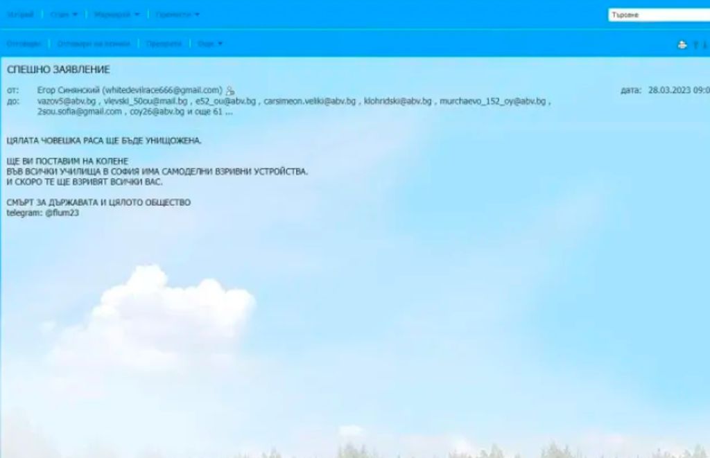 Припомняме, че в понеделник подправени сигнали за бомби в десетки учебни заведения в София, Варна и Бургас подвигнаха на крайник службите у нас. Стотици ученици бяха евакуирани поради заплашителни имейли.
