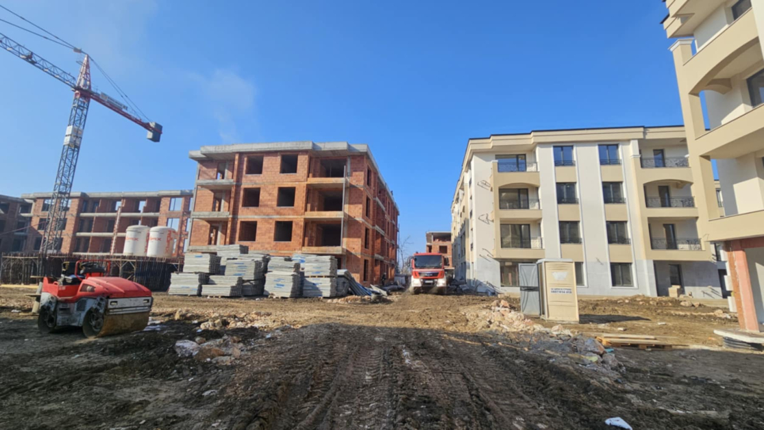 Огънят е обхванал покрива на постройка на бул. „ България “, наоколо до жилищния комплекс " Марица–Гардънс ". Тя е на стадий недодялан градеж, като няма заплаха за жителите, допълват оттова.
