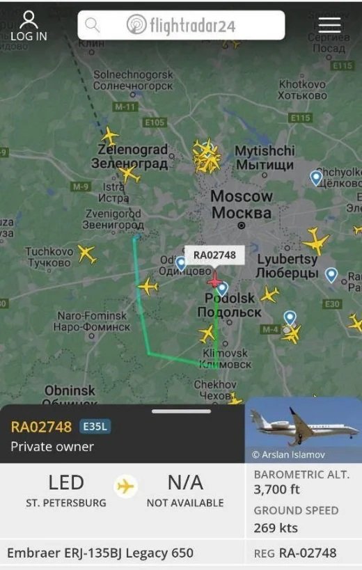 Според Flightradar Embraer ERJ-135BJ " Legacy 650 " с номер RA-02748 е кацнал в Остафиево. Номерът на разрушилия се аероплан е RA-02795.