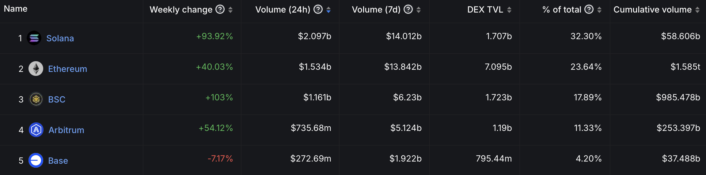Обемът на транзакциите в DEX веригата на Solana за първи път надвиши този на Етериум в понеделник, 8 юли 2024 година