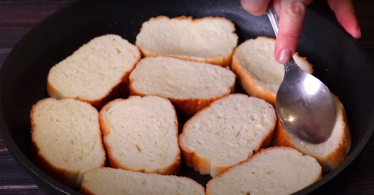 Нарежете хляба на филийки, потопете в мляко (150 мл) и поставете в намазана с масло тава за печене на един пласт. Направете дребни вдлъбнатини с лъжицата.