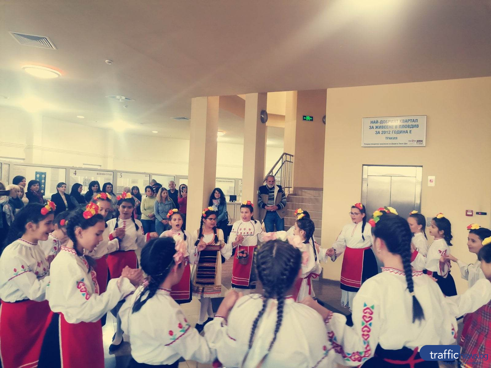 Традиционни лазарски песни огласиха кметството в най-младия пловдивски регион и нарекоха за здраве, триумфи и изобилие. Момичетата от 4-ти клас с класен началник Валя Генова извършиха и типичните за празника танци и обреди.