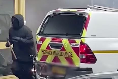 Престъпниците ускоряват колата на задна скорост и я врязват във витрината. Тогава се появява техен съизвършител, който държи секира в ръцете си, като преди да влезе в помещението той заплашва жителите в близост, един от които продължава да снима ставащото, споделя " Дейли мейл ".