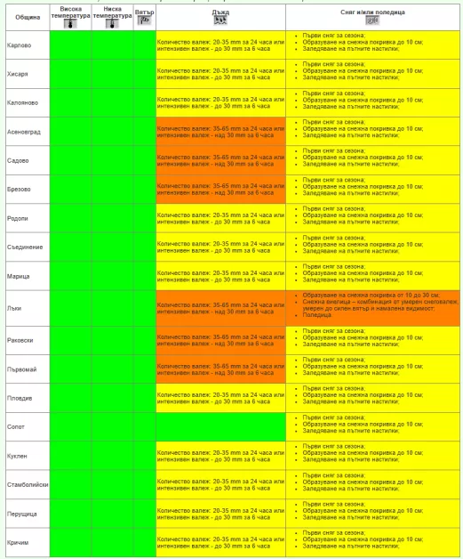За обособените общини в Пловдивска област са издадени разнообразни предизвестия както от първа, по този начин и от втора степен: