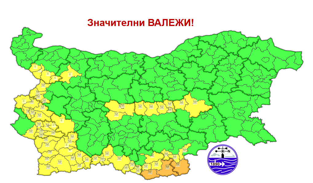 За три общини в областите Кърджали и Хасково има разгласен оранжев код.