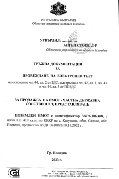 Областна администрация приключи търг за над 800 дка земя в предпазена зона край Катуница. Процедурата за продажба на държавния парцел е почнала със заповед на Областния шеф на Пловдив Ангел Стоев от дата 16 януари 2023 година .