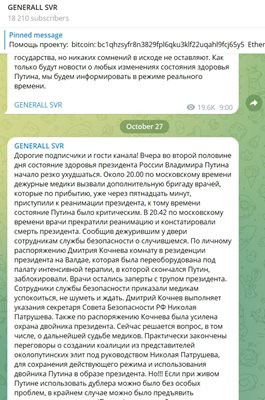 Руският телеграм канал General SVR заяви, че президентът Путин е умрял, а ден преди този момент е бил задействан неговият двойник.