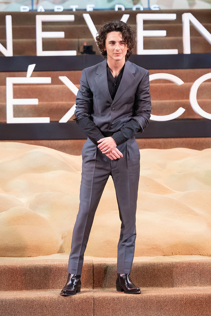 Актьорът в основната роля Тимъти Шаламе бе още веднъж с забавен стайлинг – мъчно е да го забележим в типичен костюм на червен килим и би трябвало да признаем, че щипката екстравагантност постоянно му е отивала.