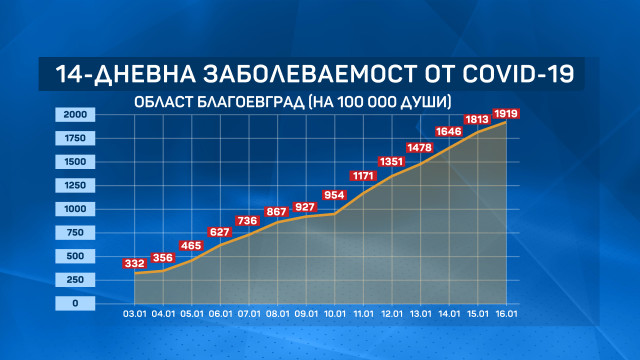 Благоевград към момента е региона, в която най-бързо се утежняват нещата. За последните 7 дни там растежът на заболеваемостта от COVID-19 е 65%.