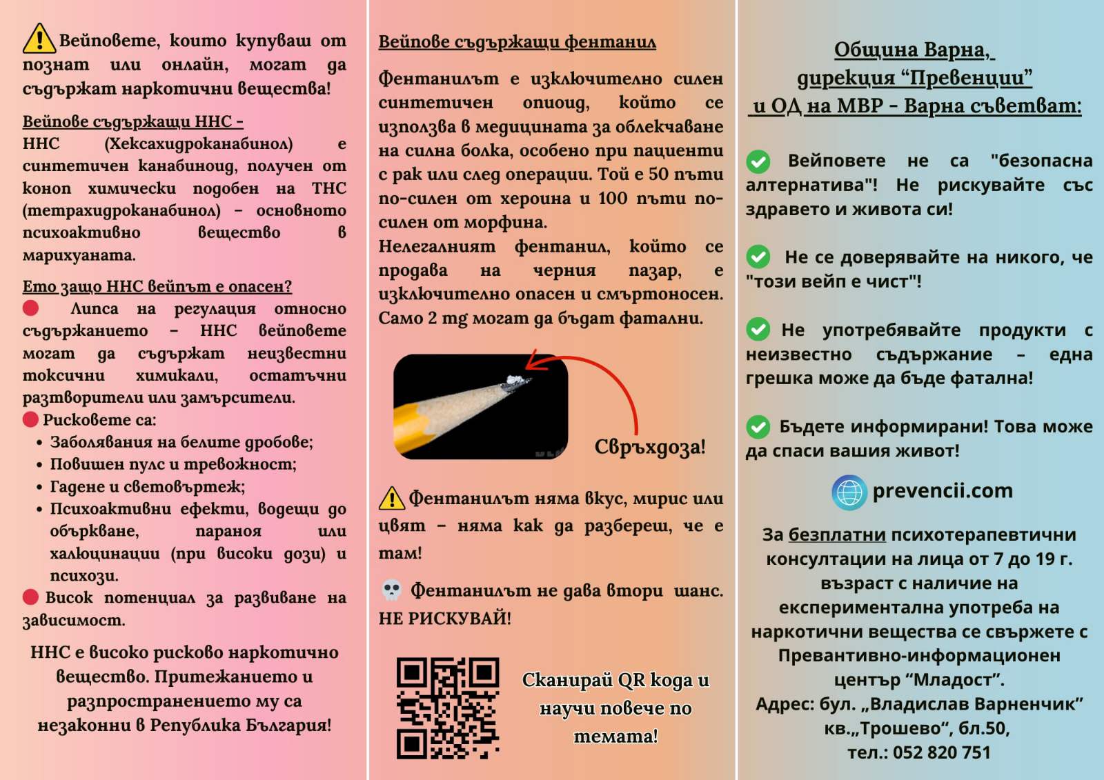 Информационна акция, за вредите от вейп устройствата измежду младежите, започва през днешния ден. Акцията е проведена взаимно от ОДМВР-Варна и отдел „ Превенции “ към Община Варна, оповестиха от администрацията.