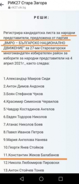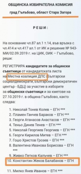 Общинският водач на ВМРО-БНД – Гълъбово, Константин Балабанов е на 10-а позиция в листата на Коалиция Движение за права и свободи да локалните избори, само че освен не е отстранен от партията си, а е комплициран като претендент за депутат единствено преди 3 месеца, от Възраждане във Facebook.