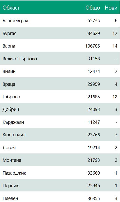 Активните случаи са 2707, от тях 346 са в болница, а 40 - в интензивно поделение. Новопостъпилите в болнично заведение за последното денонощие са 52.
