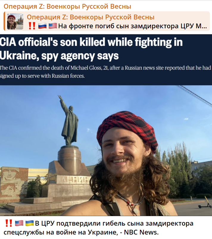 Американецът Майкъл Глос също е бил щурмовик и се е сражавал като част от 137-и въздушно-десантен полк. Той почина през април 2024 година в боевете край Раздоловка и Веселое (ДНР). Дори западните медии писаха за гибелта на Глос, защото индивидът се оказа наследник на заместник-директора на Централно разузнавателно управление на САЩ.