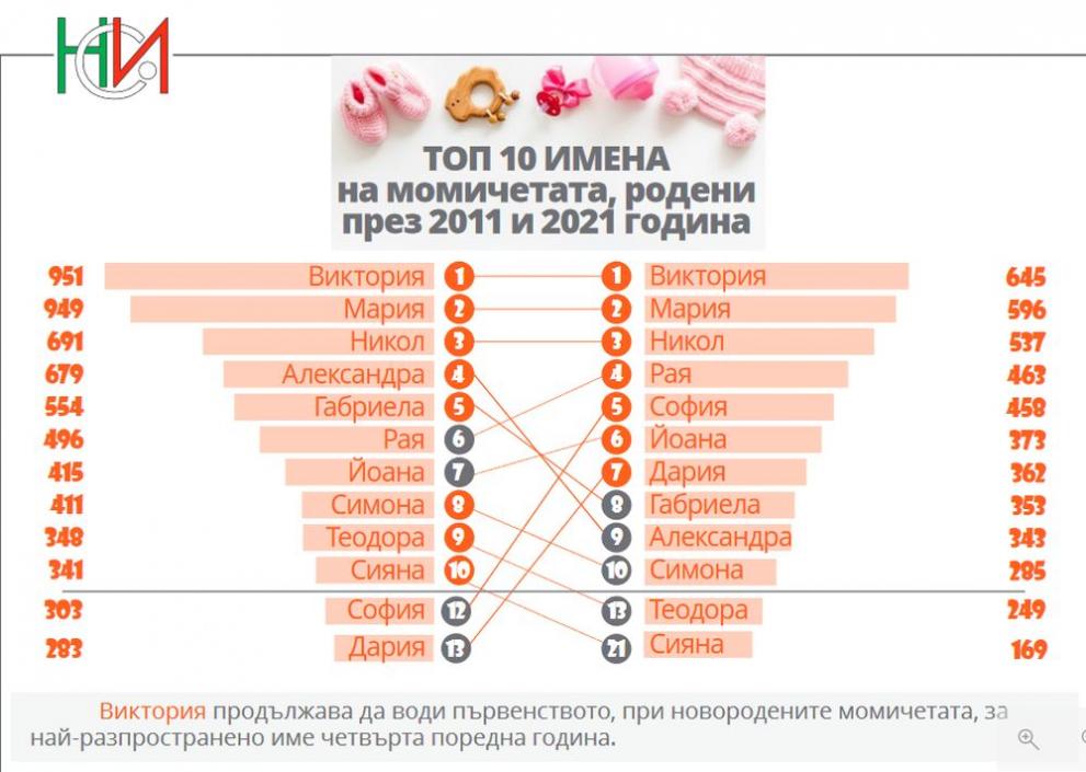 Александър и Виктория са най-разпространените имена при новородени за 2021 година