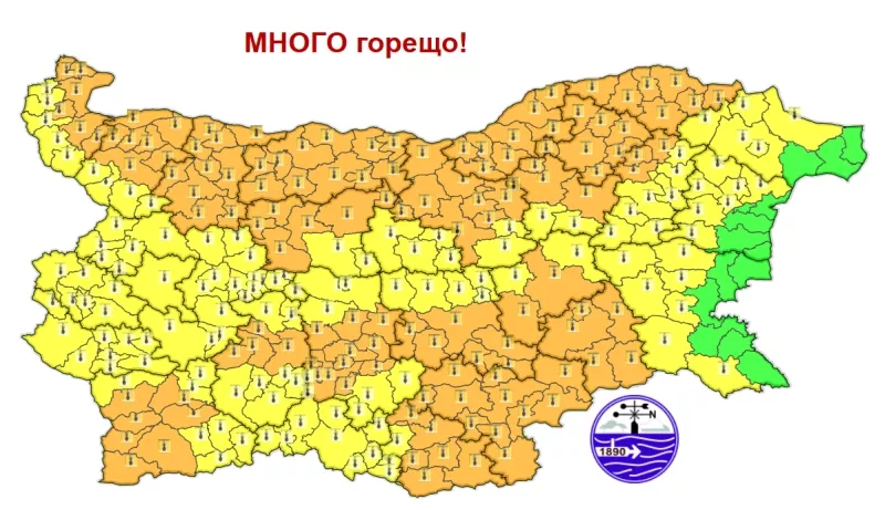 Обявиха оранжев код за рисково високи температури в Пловдив и още 17 обласи у нас на следващия ден. Според картата на Национален институт по метеорология и хидрология останалите са Видин, Враца, Плевен, Ловеч, Велико Търново, Русе, Търговище, Разград, Силиства, Шумен, Сливен, Ямбол, Хасково, Стара Загора, Кърджали, Пазарджик и Благоевград. Жълт код е разгласен за останалите области без Бургас, Варна и Добрич, където не се чакат ексремни горещини.