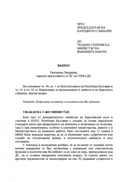 Захариева пита назначени ли хора в пенсионна възраст от ДС в екипа на Генчовска