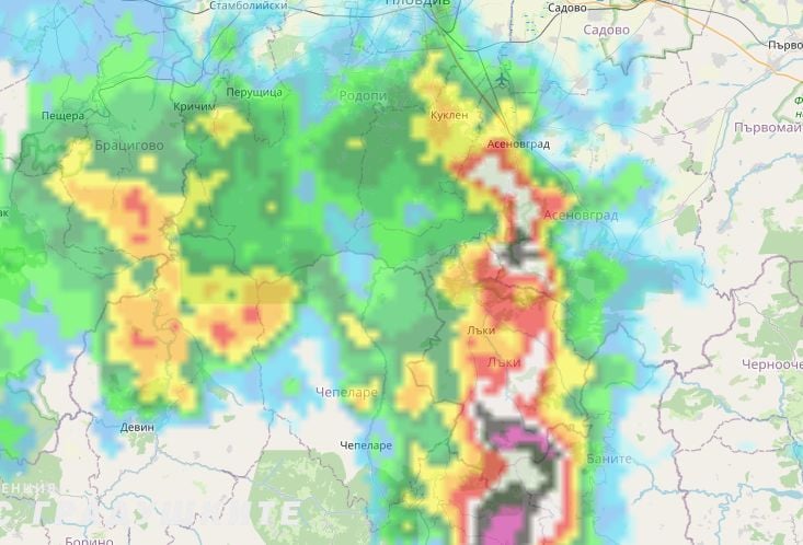 Очакванията за превалявания и гръмотевици се оправдаха. Още от през вчерашния ден беше издадено предизвестие за обилни количества превалявания и заплаха от градушки в в доста региони от страната. Обилен дъжд вали в Пловдив. Според радарната информация градоносните облаци са над Асеновград и Лъки, както и Смолян.