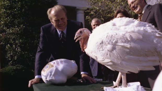 Съобщенията за пуйки като дарове на американските президенти могат да бъдат проследени до 1870 година, когато търговецът на домашни птици от Роуд Айлънд Хорас Воуз започва да изпраща добре охранени птици в Белия дом. Първите фамилии не постоянно са пирували с неговите пуйки, само че сигурно са му спечелили огромна известност, като фермата му се трансформира в същинска институция в Белия дом. На Деня на благодарността през 1913 година една пуйка, пристигнала неотдавна от Кентъки, показа няколко минути популярност с тънко оперения гражданин на Роуд Айлънд.