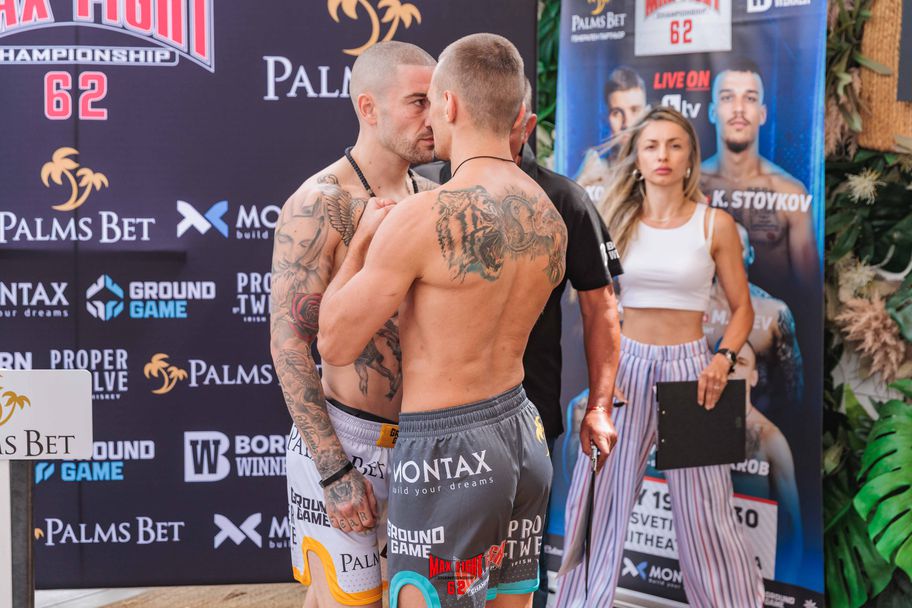 Официалното претегляне на участниците в MAX FIGHT 62 мина за всички без проблем, само ММА боецът Георги Валентинов се оказа с 400 гр. над нормата от 77,600 кг. в категория полусредна.