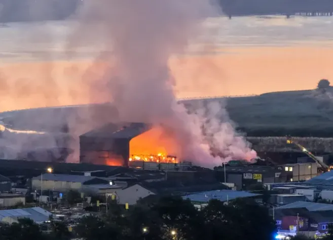 Около 150 пожарникари и 25 пожарни коли са се борили с огъня в региона на улица Maypole Crescent. Пожарът е обхванал склад в автоплощадка, три багера и голям брой транспортни средства.