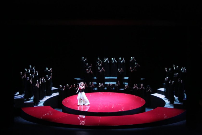 Зрителите ще имат опцията да се насладят на величествен театър, който няма роднинство с множеството версии в оперни постановки, кино и балетни тълкования на този музикален текст. Режисьорът акад. Пламен Карталов предлага независим концептуален взор в жанр на традициите от древногръцкия спектакъл и японски спектакъл „ Но “.