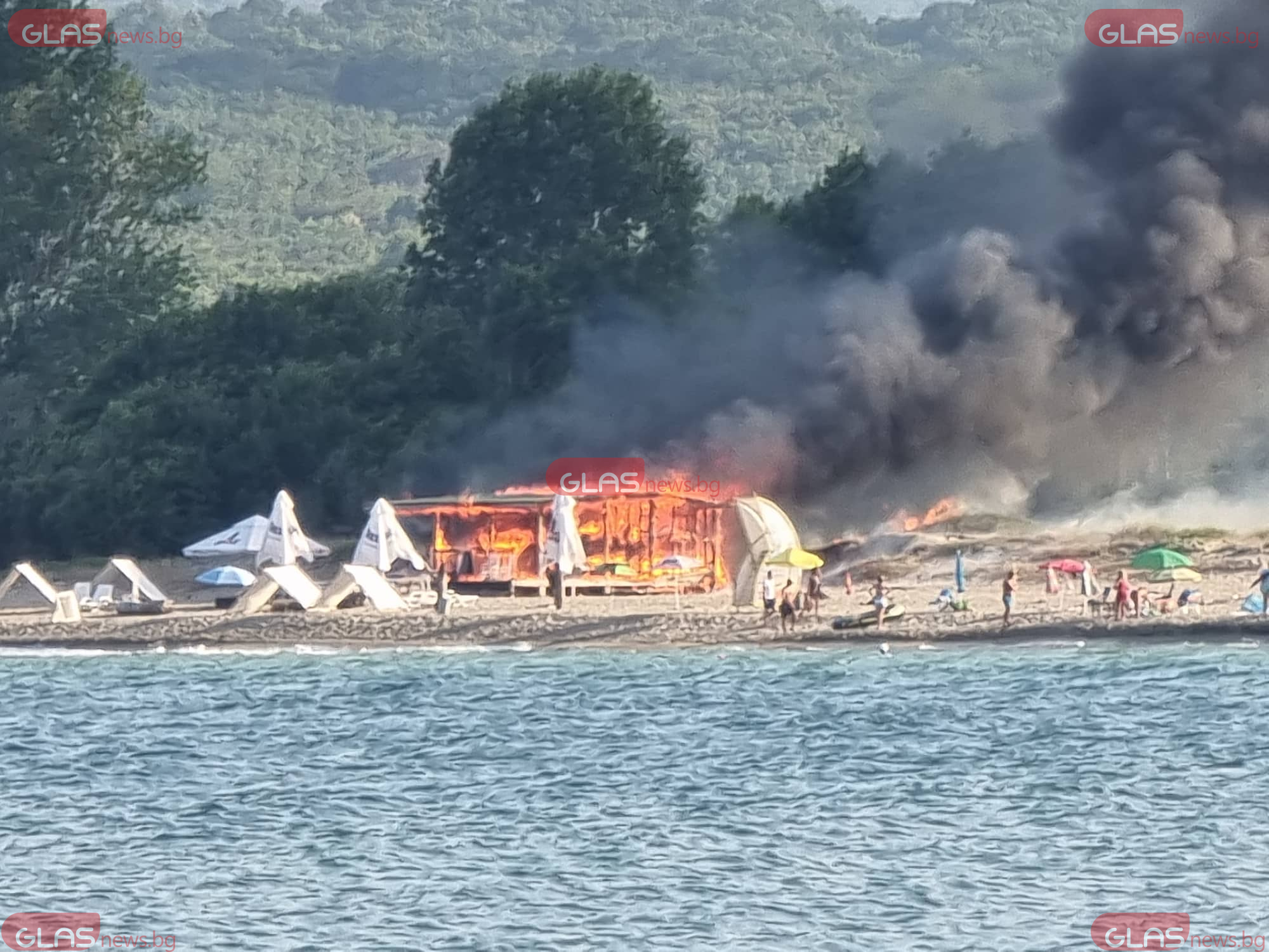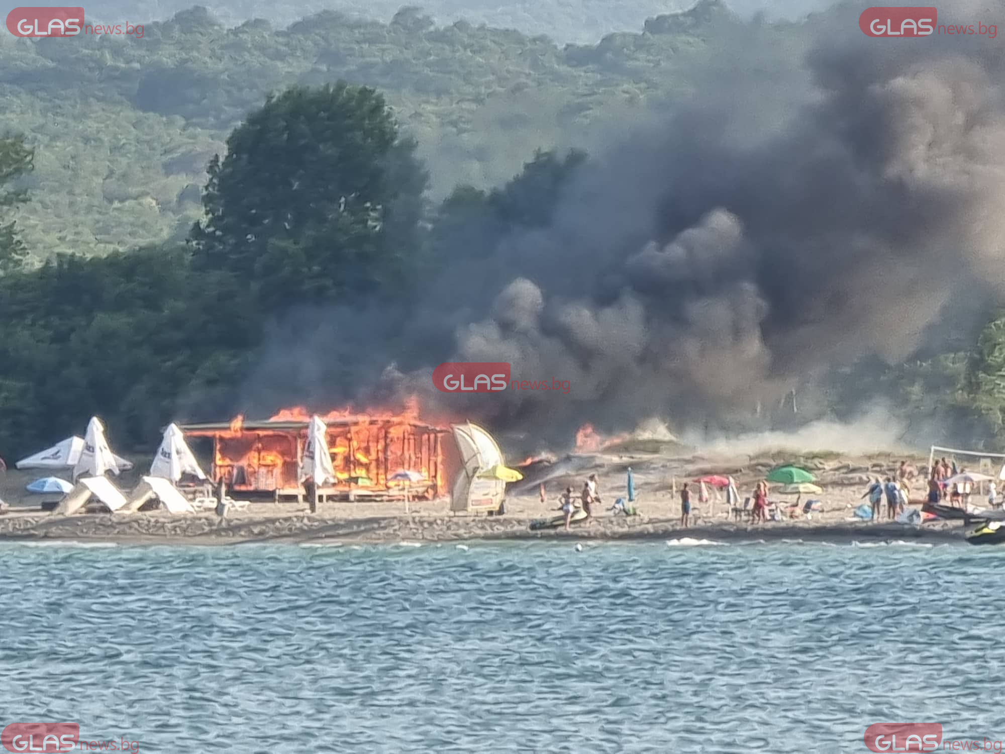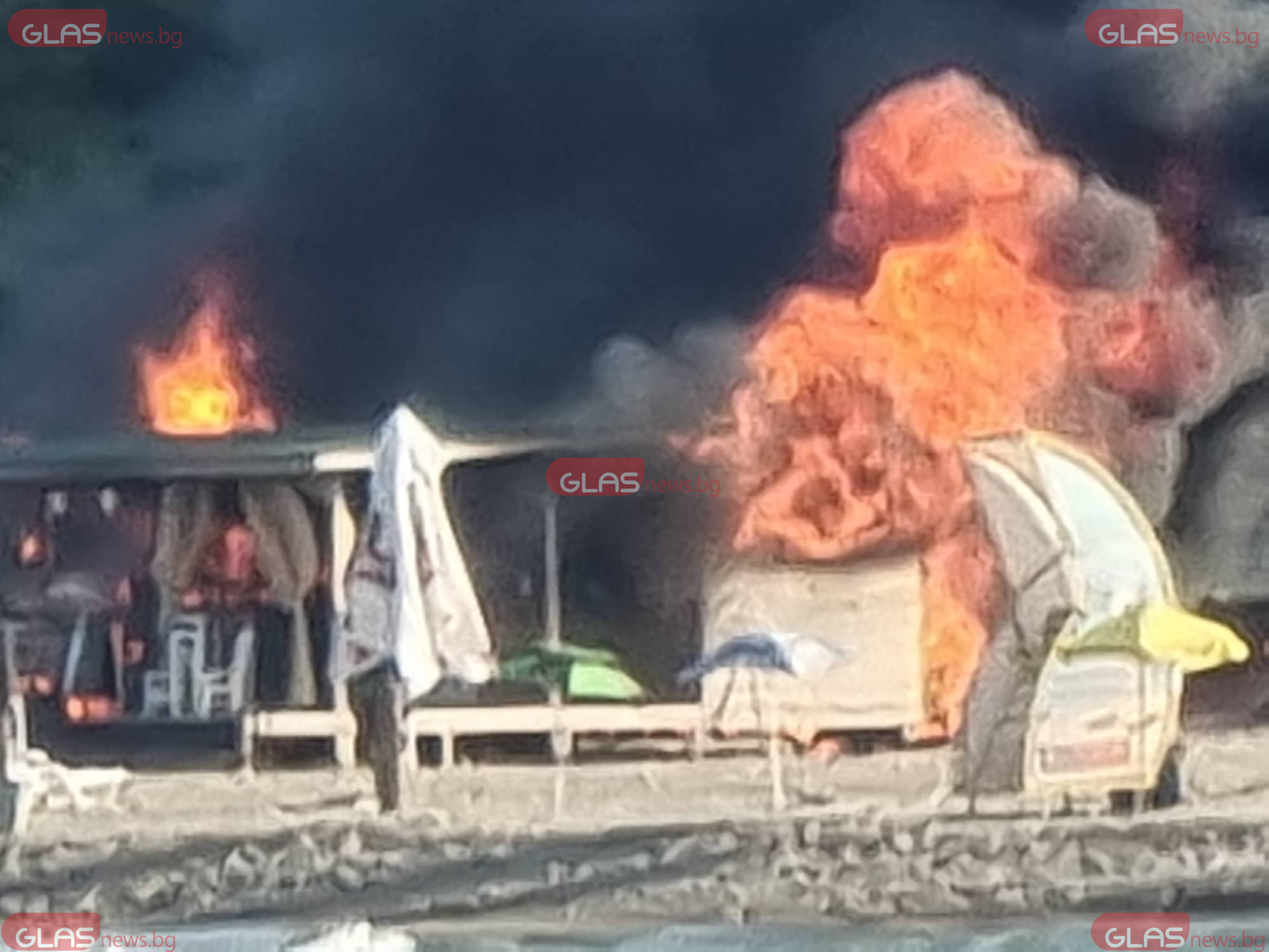 Огнен ад на плажа в Китен! Чуват се взривове, гори заведение СНИМКИ