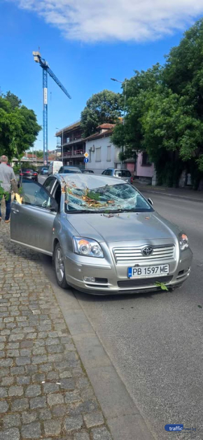 Огромен клон на дърво се стовари върху движещ се автомобил в Пловдив. Инцидентът се е случил на бул. „ Марица “ 53 сред Пешеходния мост и моста на Герджика. Пред кореспондент на TrafficNews потърпевшите описаха, че са се движели постепенно, когато напълно ненадейно клонът е паднал и е нанесал вреди върху автомобила.