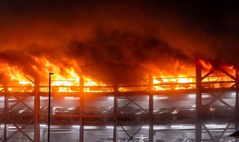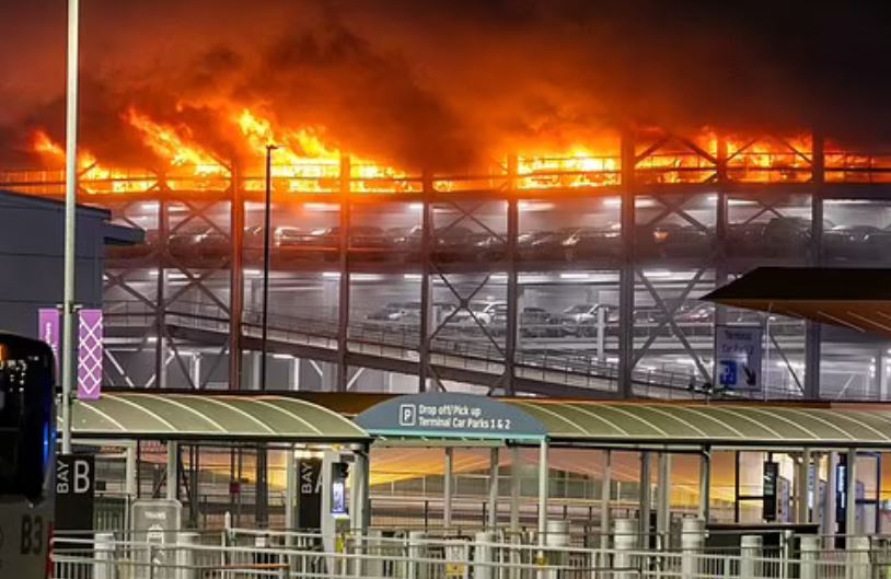 Пожарната и избавителната работа на Бедфордшър се борили към 12 часа в битка с огнения пъкъл на паркинг 2 на терминала на летището, струващ към £20 милиона. Многоетажното оборудване пламна към 21:00 часа нощес.