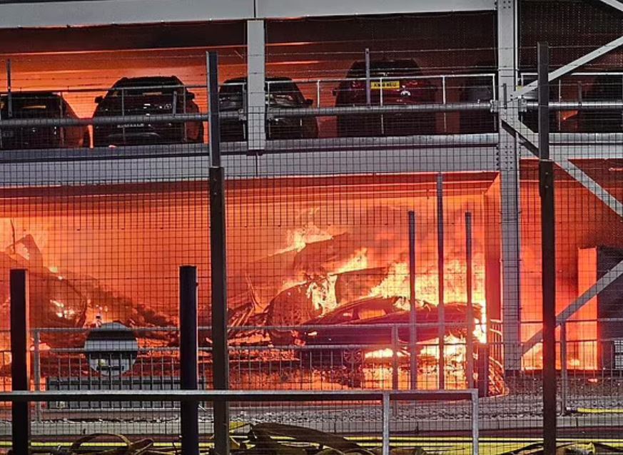 След това огънят се популяризирал, защото няколко електрически транспортни средства избухнали в пламъци в резултат на доминото, допуска пожарникар. Смята се, че към 1500 транспортни средства са били развалени вследствие на бедствието.