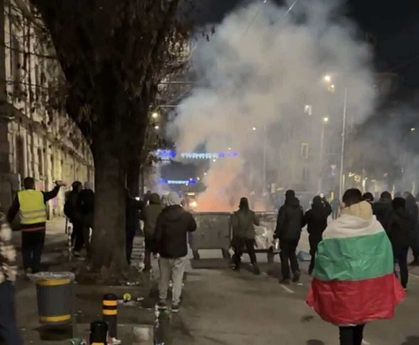 След 20:00 часа обаче се появиха провокатори, които провокираха остри конфликти с органите на реда. В тяхна посока бяха хвърляни: бомбички и камъни, похлупак от кофа за отпадък и пътни знаци, запалена кофа за отпадък