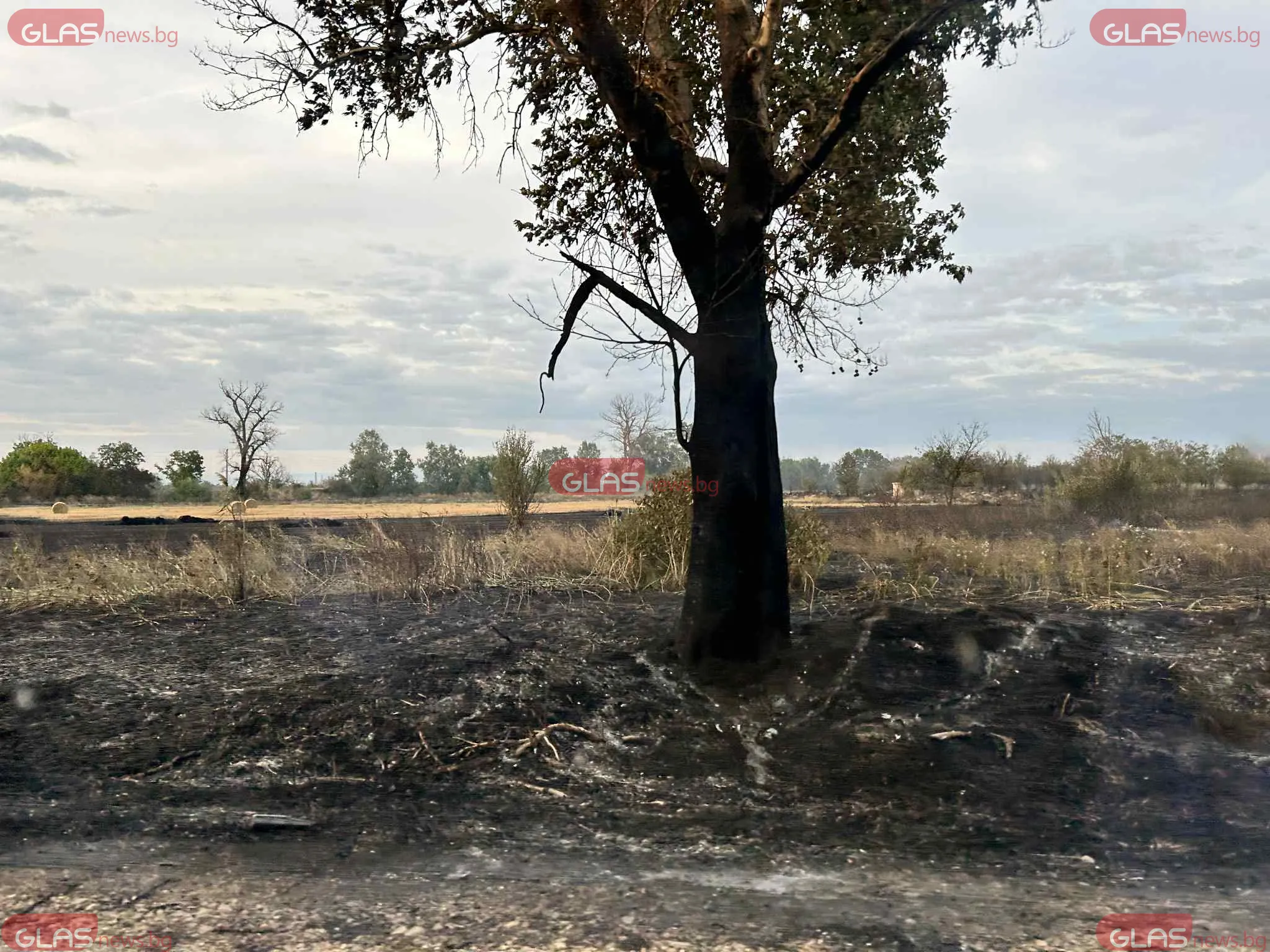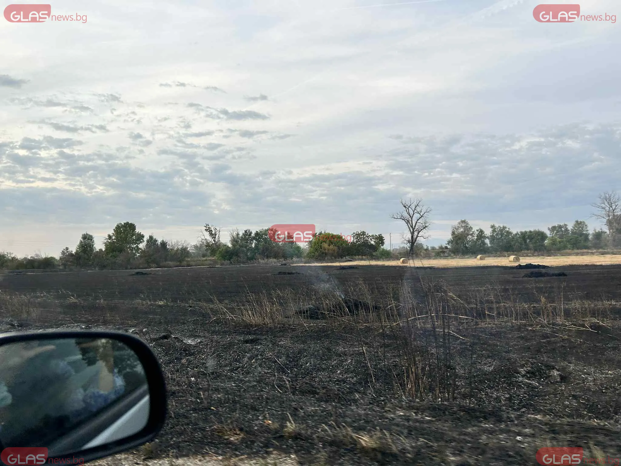 Пламъци са обхванали околност директно след табелата за излизане от Града под тепетата в посока Садово, Поповица и Първомай.
