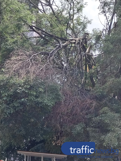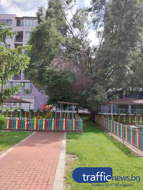 Счупен клон провисна върху площадка на детска ясла в Пловдив, родителите са притеснени