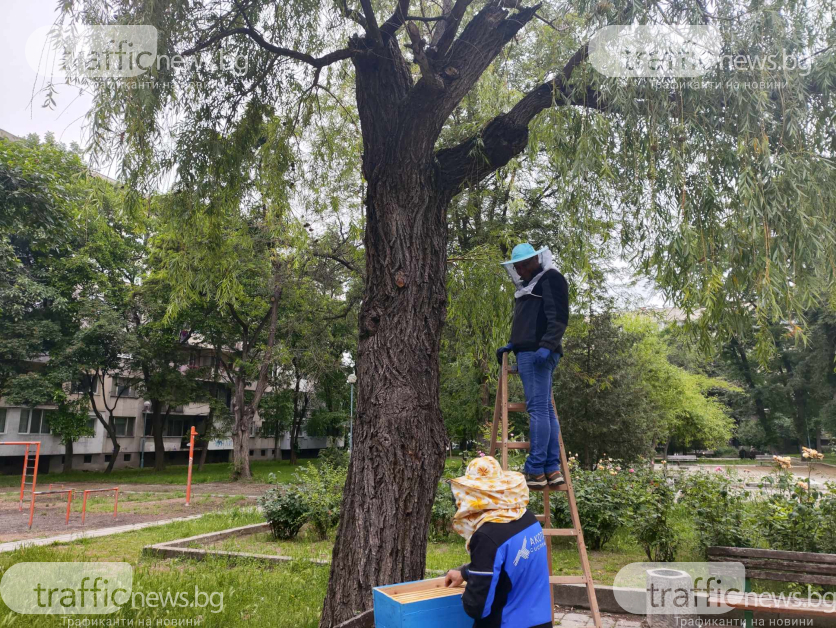 На сигнала на TrafficNews се отзоваха двама млади пчелари запалянковци от Пловдив, които поеха ангажимент да уловят роя и да осигурят спокойно място за разходка и игри на децата, както и нов дом на пчелите. С подобаващото съоръжение те деликатно се приближиха до рояка и съумяха да го уловят в специфичен кошер. Процесът изглеждаше комплициран, само че завърши бързи, а двамата пчелари бяха спокойни и съсредоточени, като подсигуряваха, че нито една пчела няма да бъде засегната в процеса.