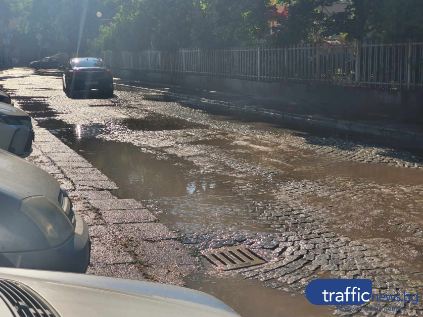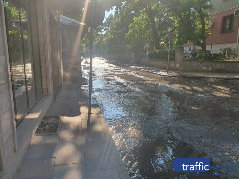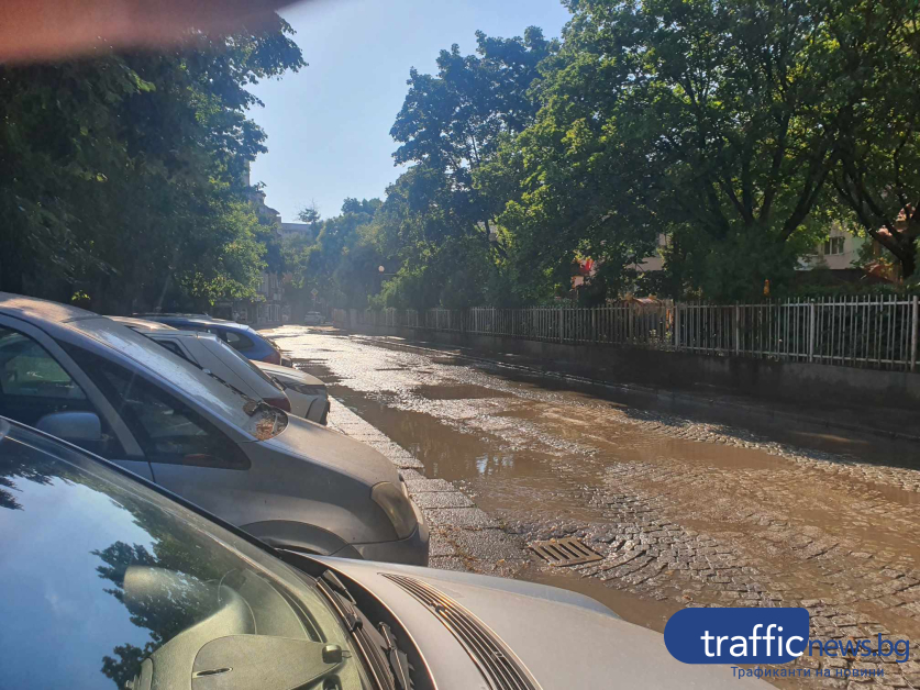 Междувременно вода тече на всички места и наводнява близките улици, видя кореспондент на TrafficNews. Водоподаването в региона на повредата е спряно.