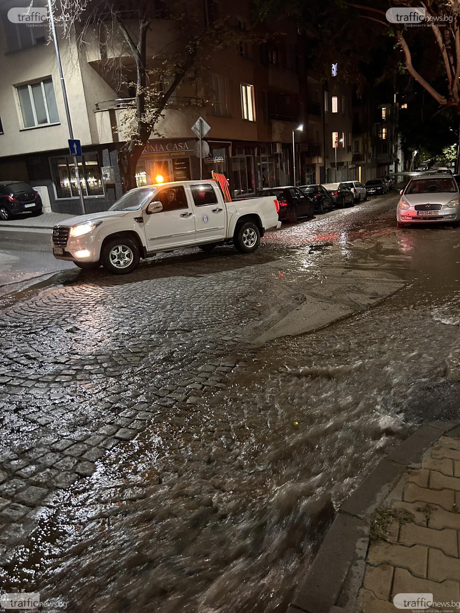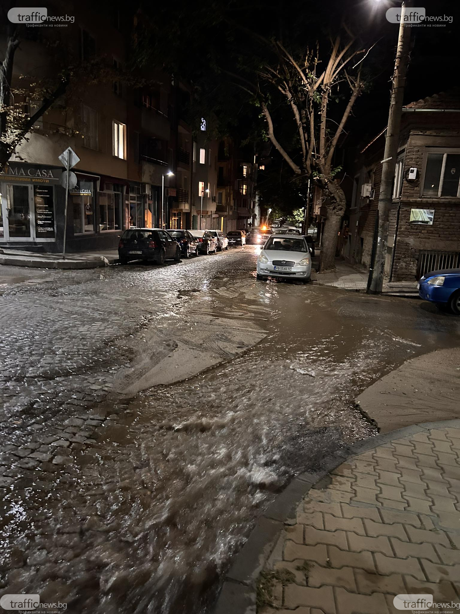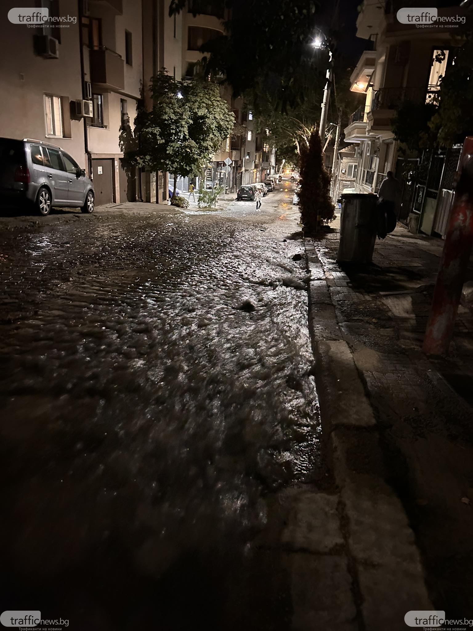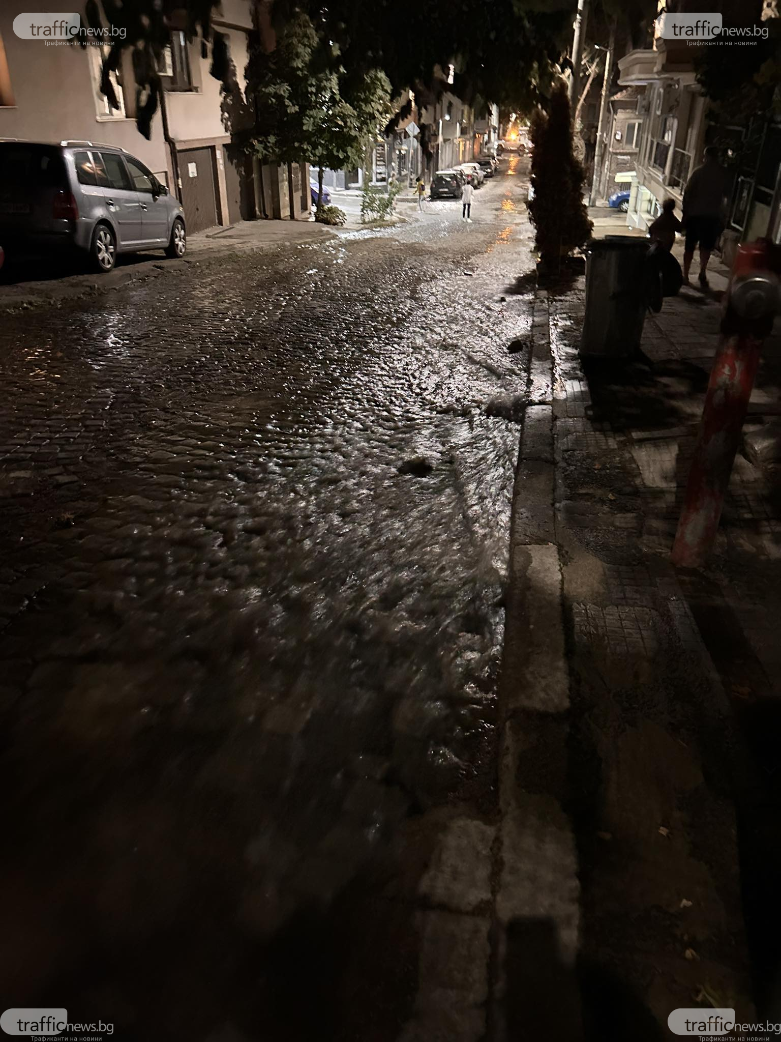 Хората под паника са почнали да местят колите си от улицата, която се е трансформирала в река.