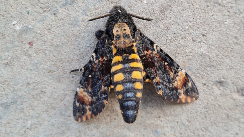 Пеперудата Мъртвешка глава е получила наименованието си поради наподобяващите череп шарки върху горната част на тялото