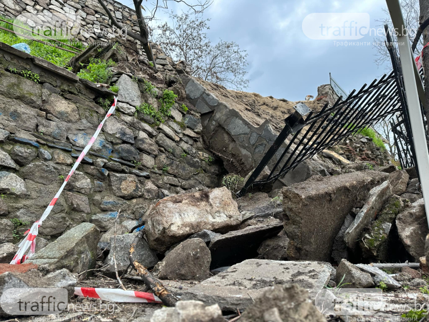 Припомняме, че през вчерашния ден с обява в обществените медии кметът Костадин Димитров, алармира, че евентуално поради продължителните дъждове са потърпевши зидовете - част от тях автентичен строеж, наоколо до известен ресторант. Срутището е в границите на частен парцел.