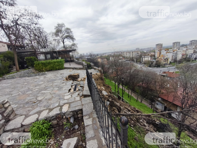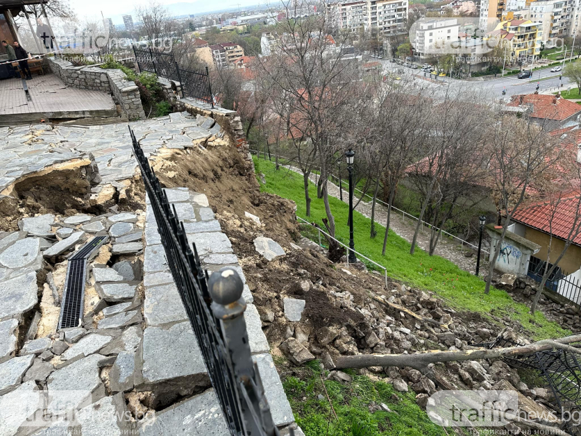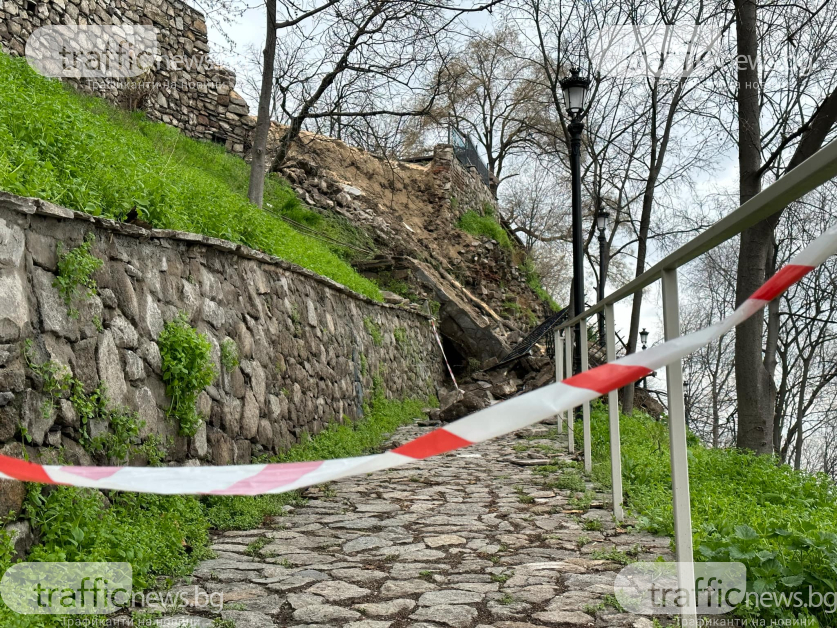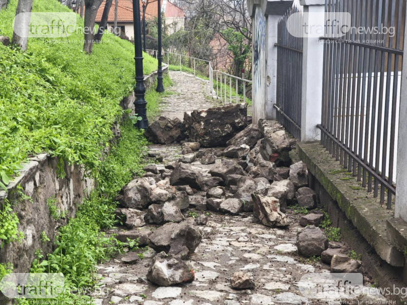 Огромни камъни от подпорната стена на ресторанта Рахат тепе са блокирали и двете пътеки към Небет тепе откъм източната крепостна стена. Те са повлекли със себе си парапетите на заведението и защитни огради. Достъпът е стеснен, а свлачището – рисково.