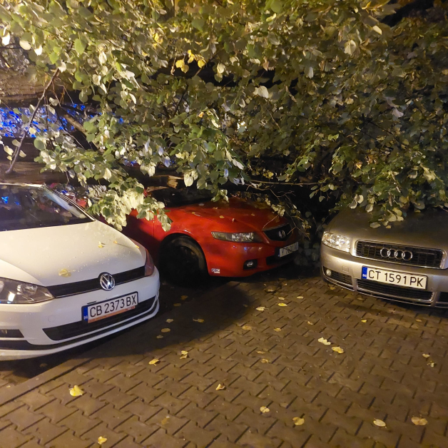 Огромно дърво се е стоварило нощес върху паркирани коли. Инцидентът е зародил в Стара Загора. Нанесени са съществени материални вреди по транспортните средства. Екипи на пожарната са пристигнали на мястото на „ Августа Траяна “ 36А.