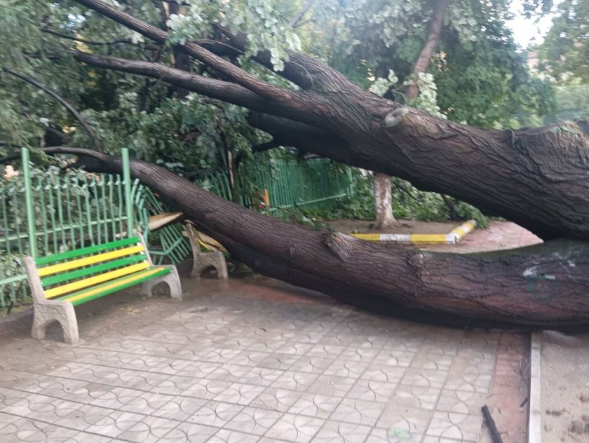 За благополучие, по това време там не е имало деца. За случая оповестиха локални минувачи, които молят общината да отстрани дървото и обезопаси региона.