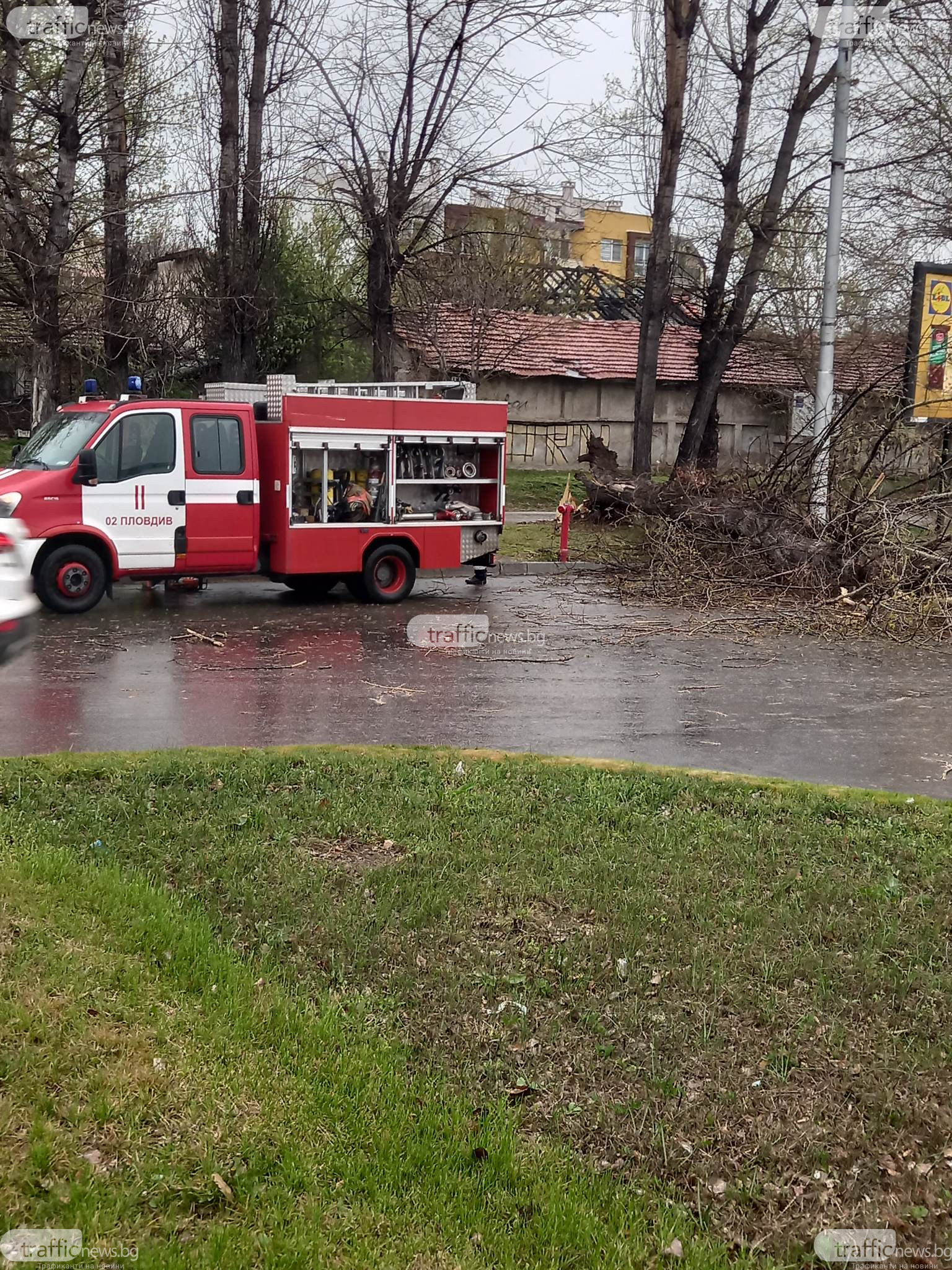 Огромно дърво се стовари върху джип, който е бил в придвижване, алармираха четец на TrafficNews. Инцидентът е станал на Коматевско шосе до кръстовището с бул. „ Никола Вапцаров ”.
