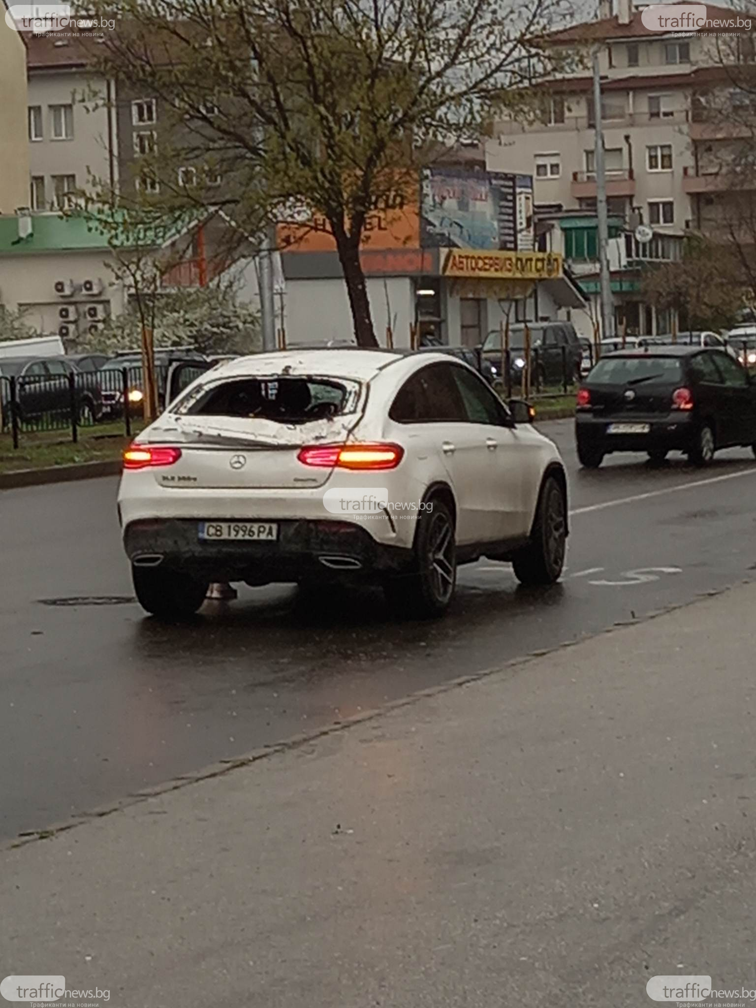 Мерцедесът е пътувал в южна посока по Коматевско шосе, когато голямото дърво се е стоварило в задната част на колата. Истински шанс е, че дървото не е паднало върху предната част на джипа, като това е било въпрос на по-малко от секунда.