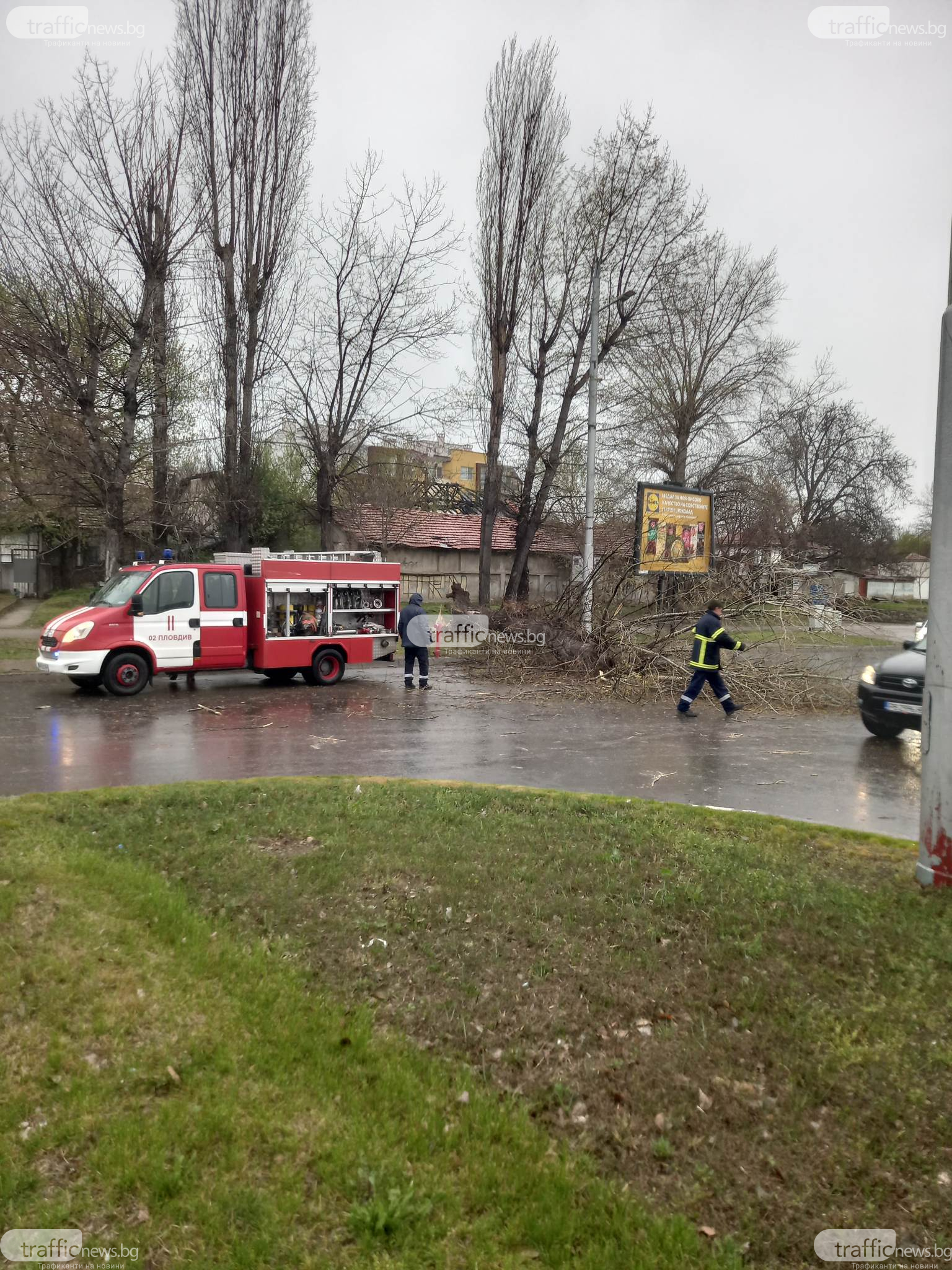 В момента на място има екипи на пожарната, които режат дървото. Движението по булеварда е затворено.
