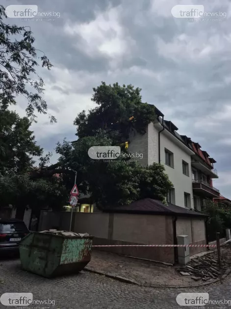 Огромно дърво се стовари върху фасада на къща в широкия център на Пловдив