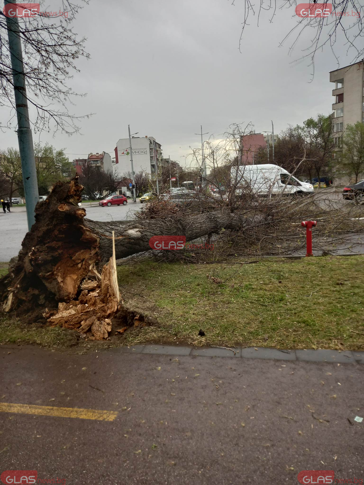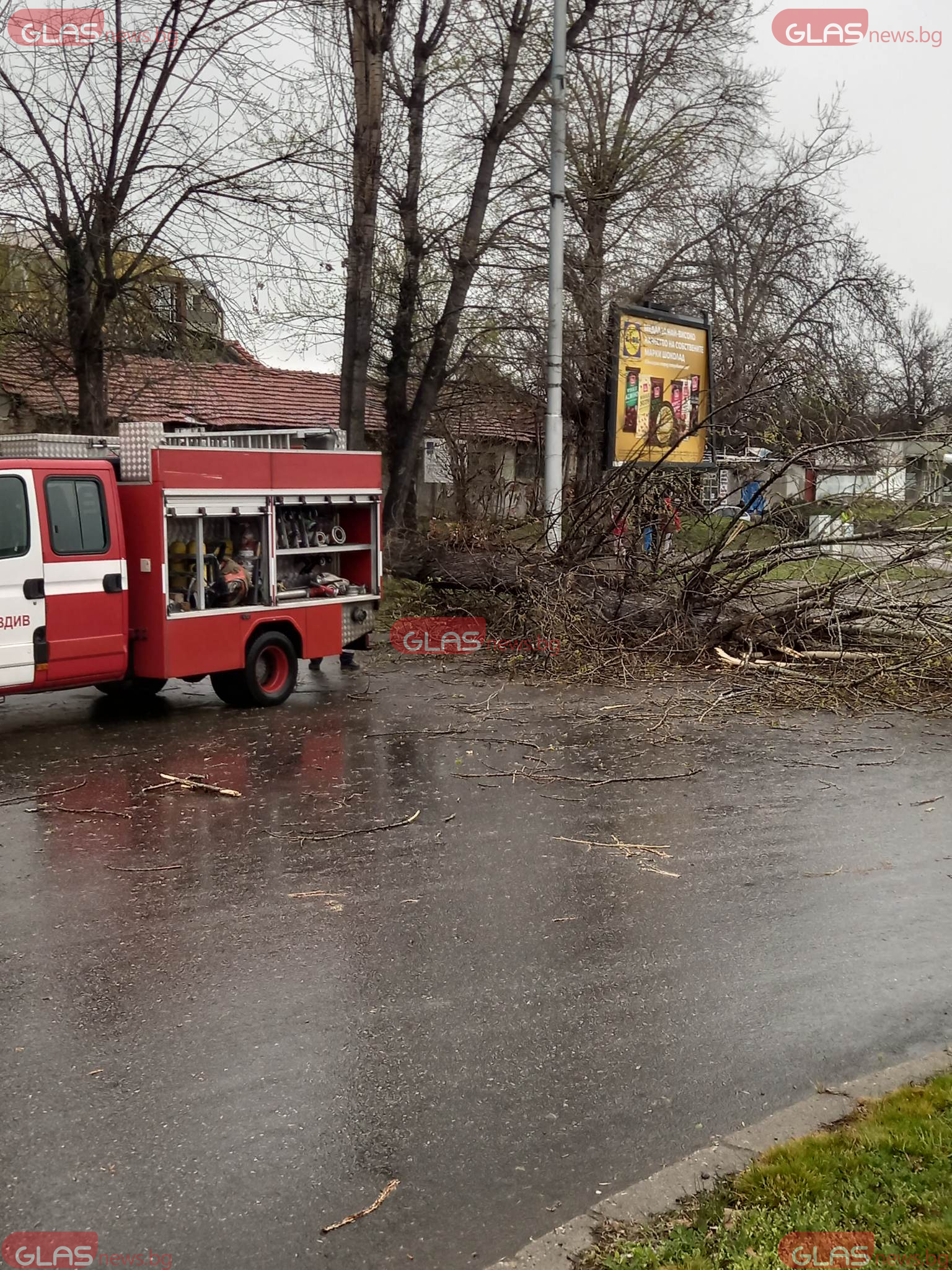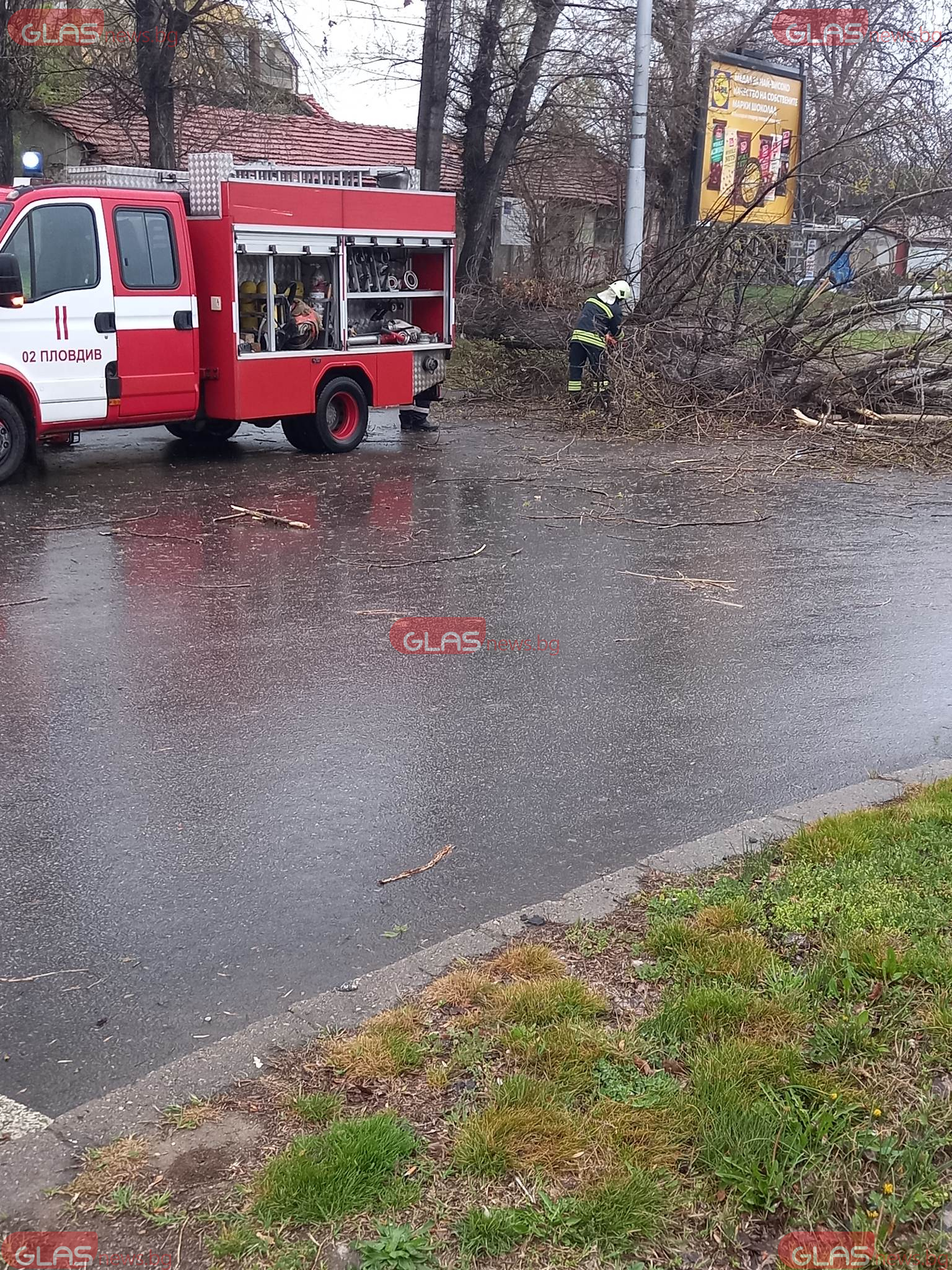 Пловдивчани алармират за десетки паднали клони и дървета по огромните булеварди на града, изключително по " Руски " и ремонтиращия се към този момент повече от 9 месеца бул. " Хаджи Димитър ". Има изкоренено дърво до църквата Св. Троица в Кючук Париж. Блокиран е пътят по ул. " Архемандрит Евлоги ", през ремонтирания сектор на " Даме Груев " в посока " Пере Тошев ", съобщи кореспондент на GlasNews. Автомобилите се постанова да обръщат. Няма потърпевши коли или хора.