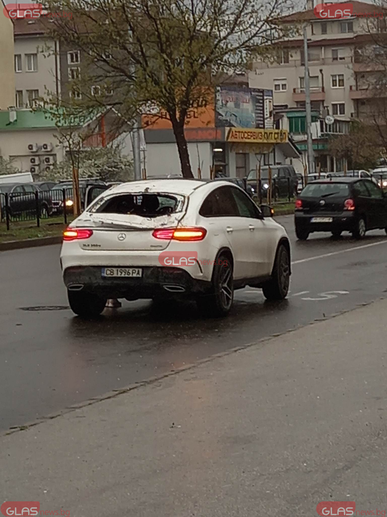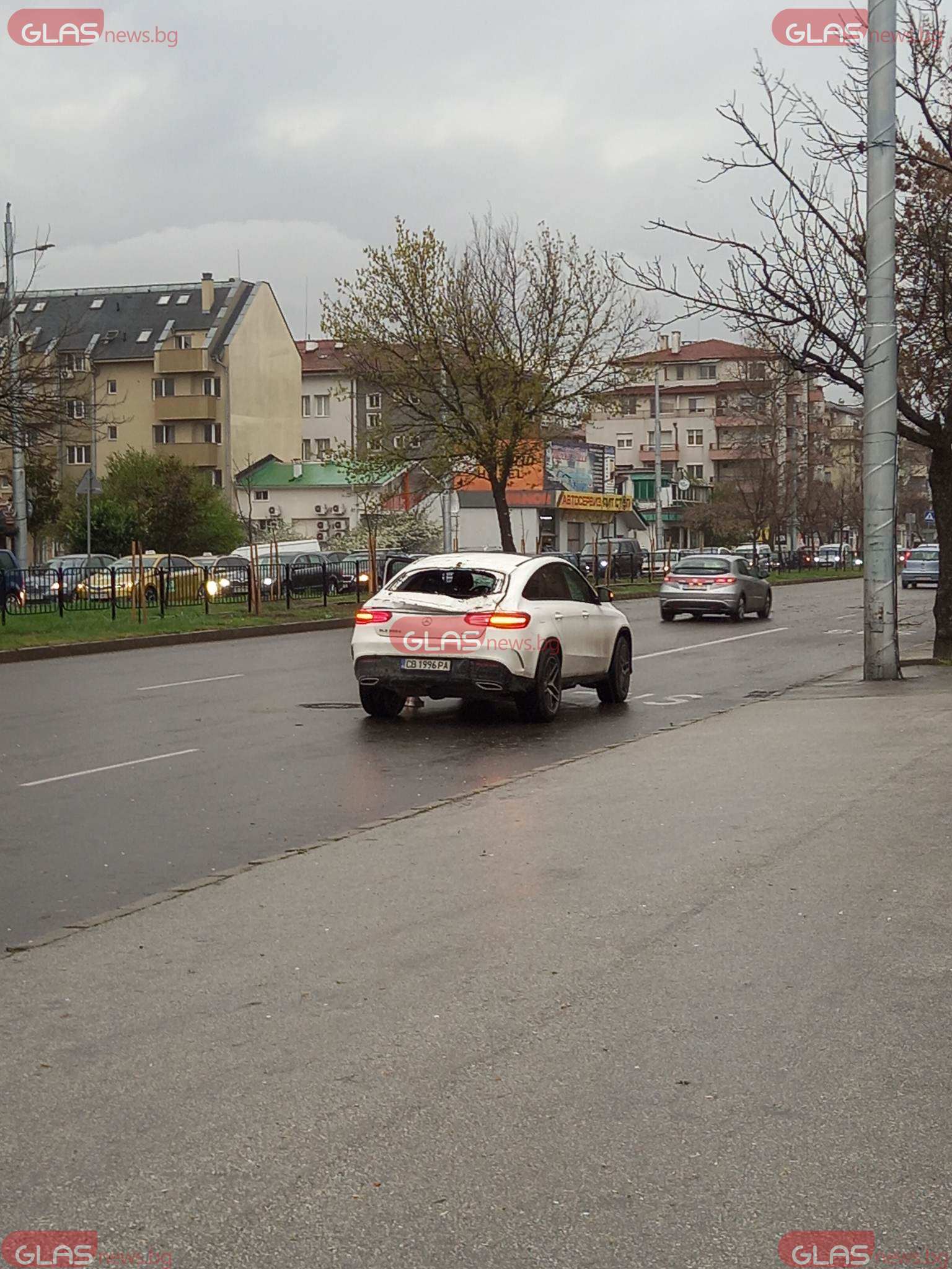 Джипът се е движел по Коматевско шосе, когато голямото вятърът е изтръгнал дървото и то се е стоварило в задната част на мерцедеса. За наслада, водачът на автомобила не е потърпевш.