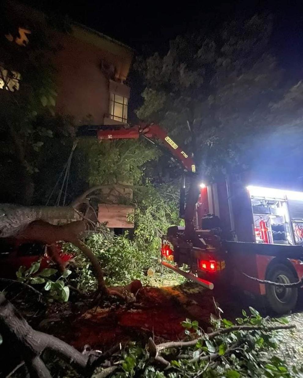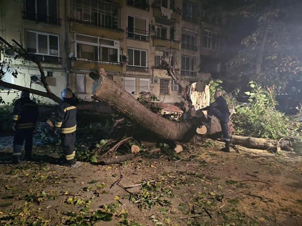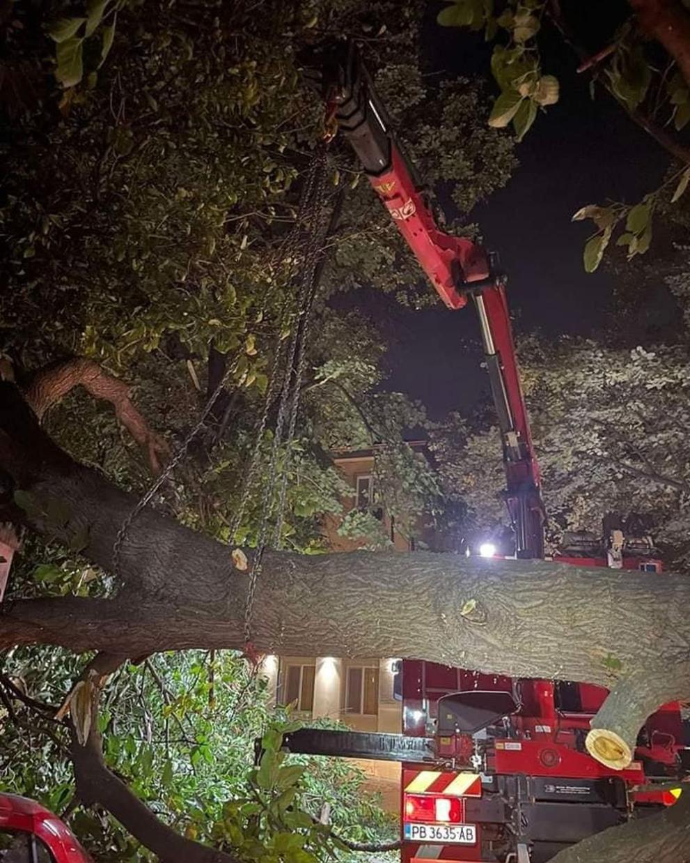 Останалата част от същото дърво пада тази нощ към 01.00 часа. Два екипа от пожарната и са рязали, отстранявали и разчиствали дървесина и клони от мястото на произшествието.